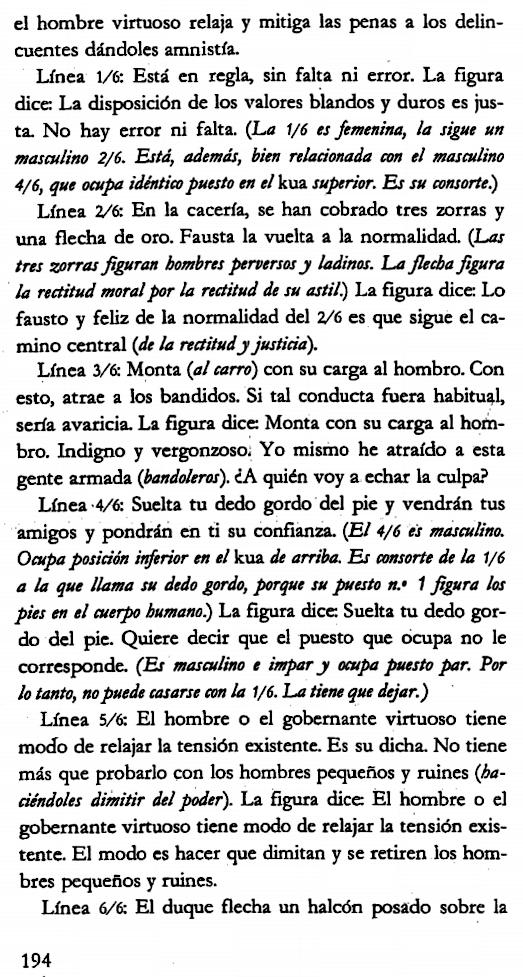 El párrafo que comienza con Tuan (definición) tiene el texto de las Alas 1 y 2, mientras que Wilhelm lo titula "Comentario para la decisión" (en el Libro III).