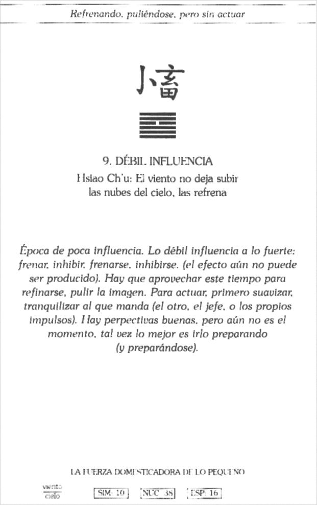 Es apenas un resumen de mi propio uso cotidiano del I Ching, basado en la consulta comparativa de varias ediciones y autores con más el "sentido personal" que le fui encontrando a los textos.